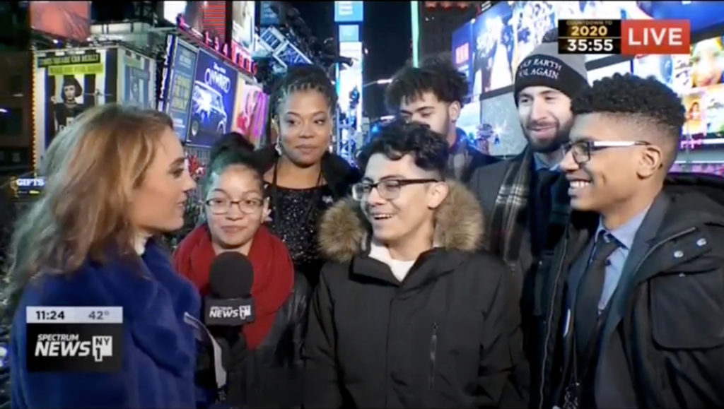 December 31, 2020January 25, 2023 NY1 WHEELS students are interviewed about climate change during NY1’s New Year’s Eve live broadcast from Times Square